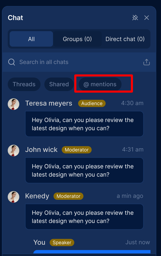 When we click on this mentions tab we want to fetch all those messages where the logged-in user has been mentioned.